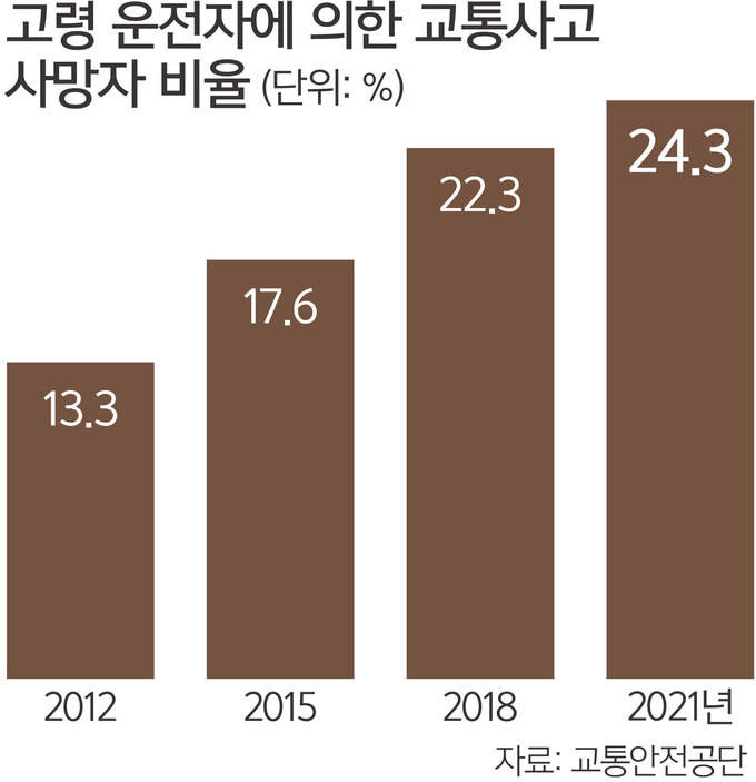 이번 사고는 고령 운전자의 교통사고 위험성을 다시 한번 부각시켰습니다. 교통안전공단의 최근 통계에 따르면, 65세 이상 운전자가 낸 교통사고 사망자 비율이 10년 만에 11%포인트 상승한 **24.3%**로 나타났습니다. 이는 **2012년 13.3%**에서 크게 증가한 수치로, 고령 운전자의 안전 문제가 심각한 사회적 이슈로 떠오르고 있습니다. 📈📉