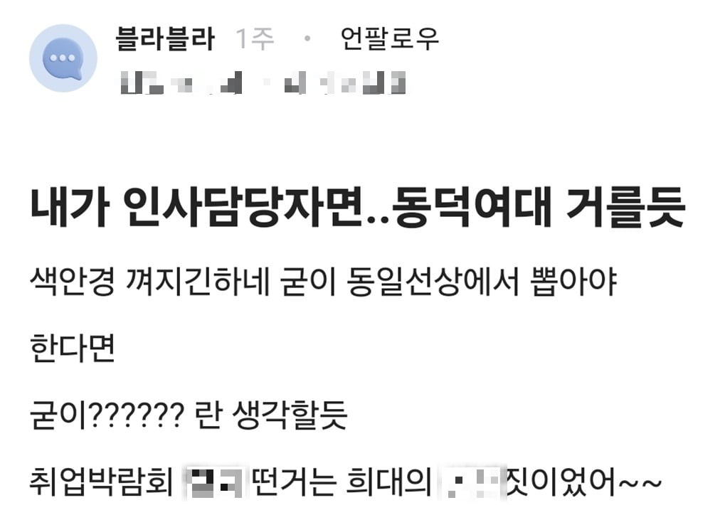 📌 커뮤니티 사이트 여대 출신 채용 차별 글의 확산