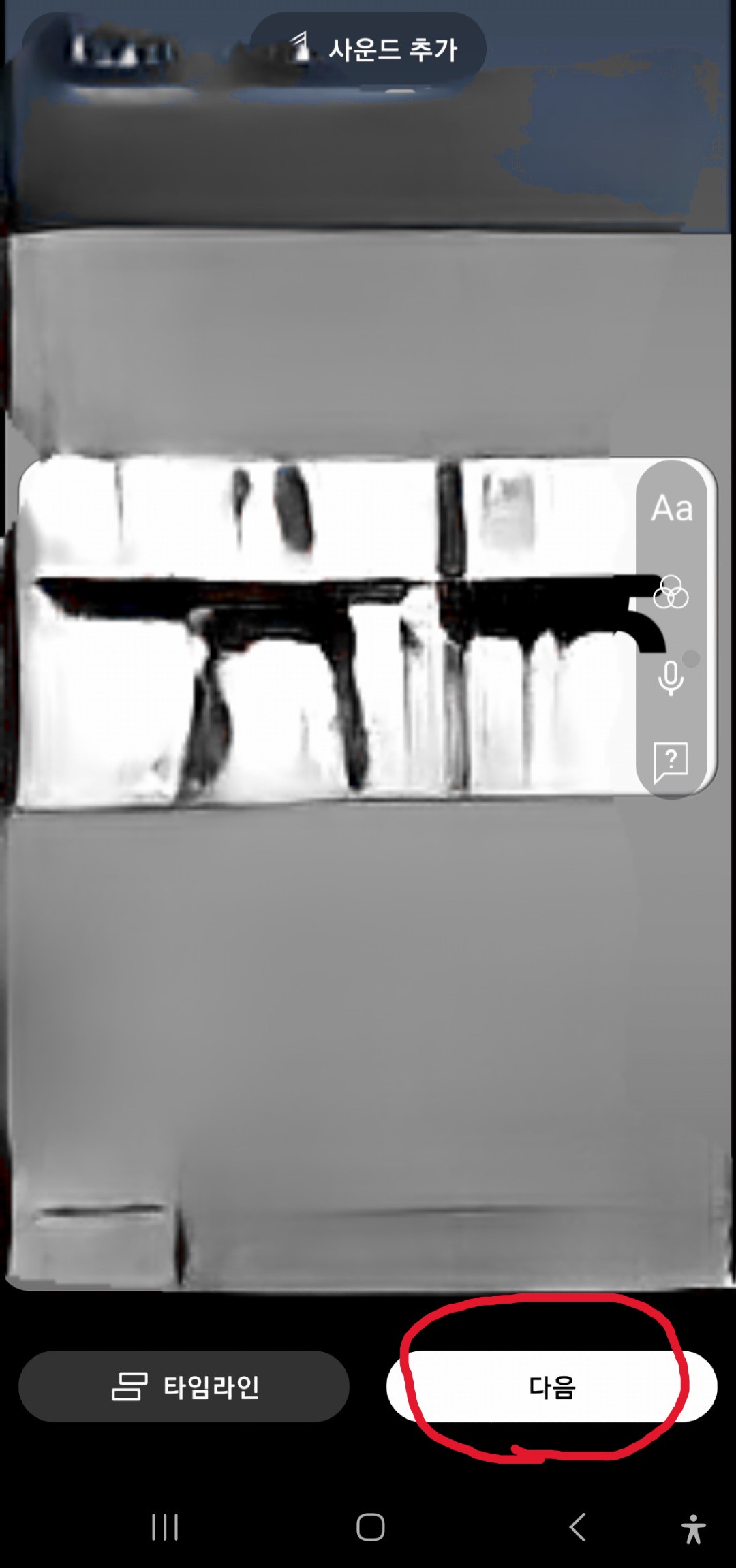 다음은 영상에 길이 조절이나 글자, 필터, 음성 등을 추가하실 수 있습니다.