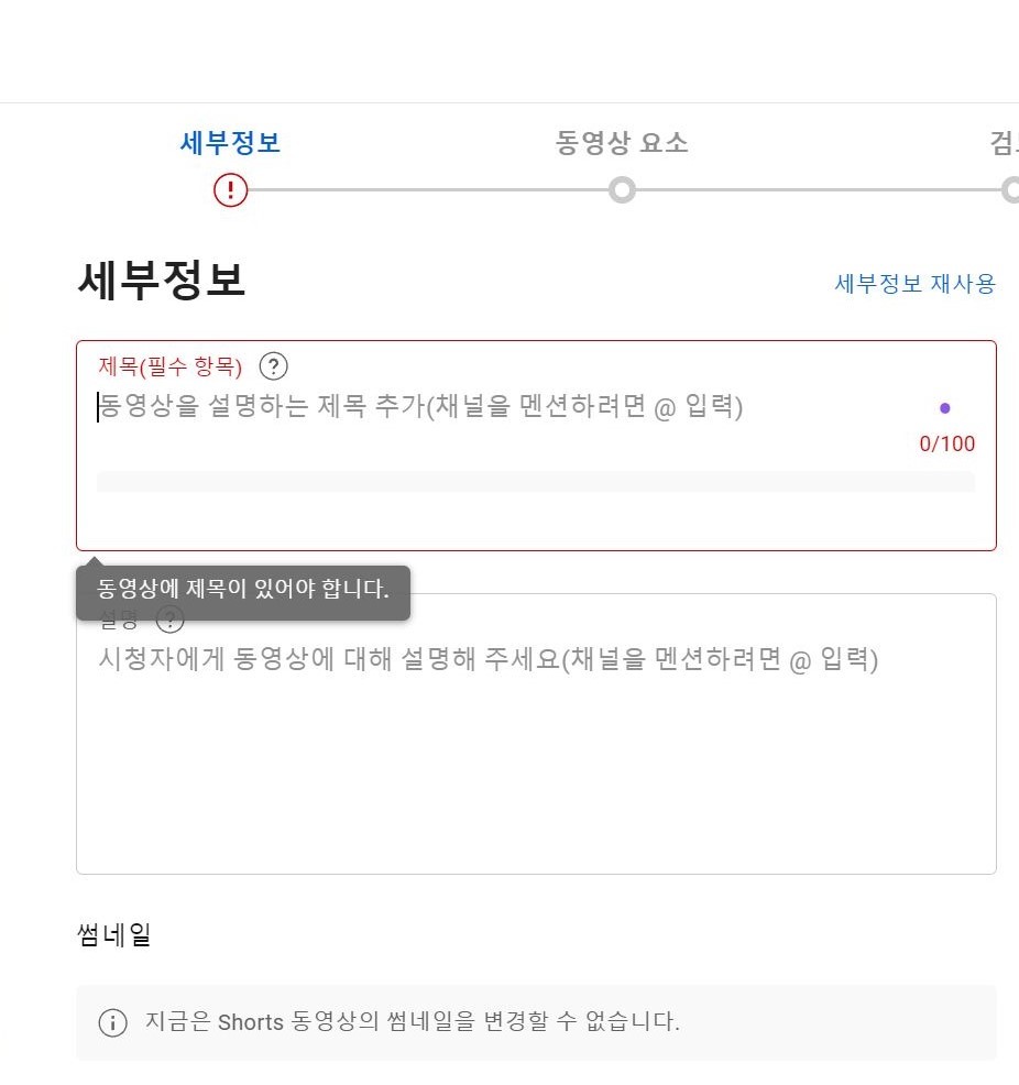 여기서는 유튜브 쇼츠 제목을 정 하는 곳입니다. 원하시는 제목을 선정하시고 작성하시면 되세요.