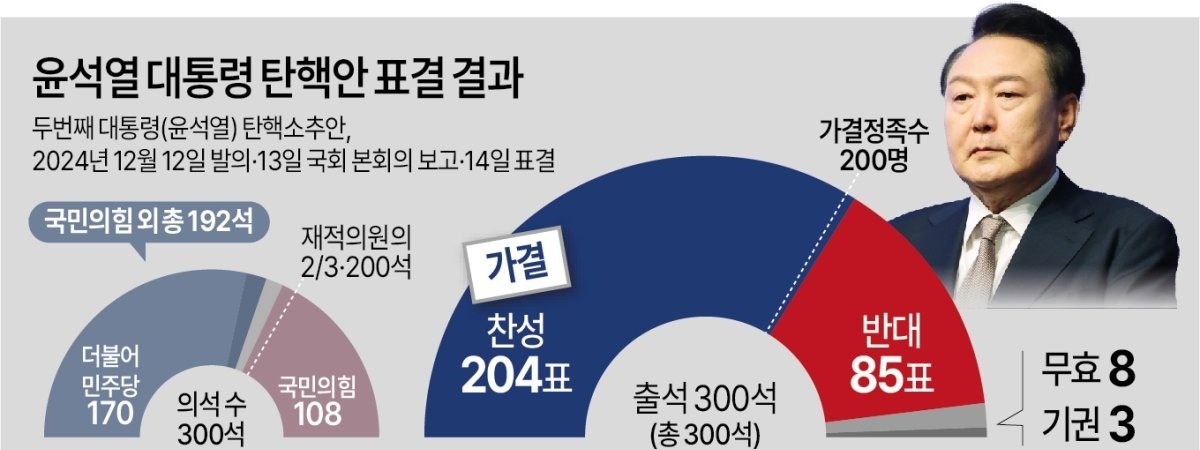 📊 탄핵안 가결, 찬성 204표, 반대 85표