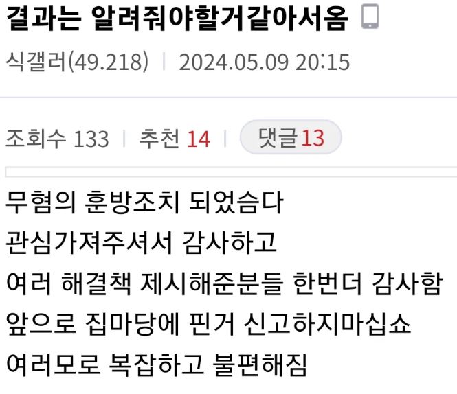 결과적으로는 무협의 훈방 조치가 되었다고 하지만 처음 대응 했던 즉결 심판 또는 기소유예의 처벌을 예고 했던 방식의 문제가 작성자를 어이 없게 만들었습니다.