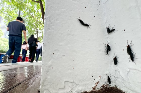 폭염속 더 극성인 러브버그가 도심 곳곳에서 대량으로 출몰하면서 시민들의 불편이 커지고 있습니다. 양천구와 중구 등 일부 자치구에서는 고압 살수차와 살포기 등을 동원하여 방역에 나서고 있습니다. 하지만, 무분별한 살충제 사용은 생태계 교란을 초래할 수 있어, 환경부와 서울시는 시민들에게 밝은색 옷을 피하고 끈끈이 패드 등을 활용할 것을 권장하고 있습니다.