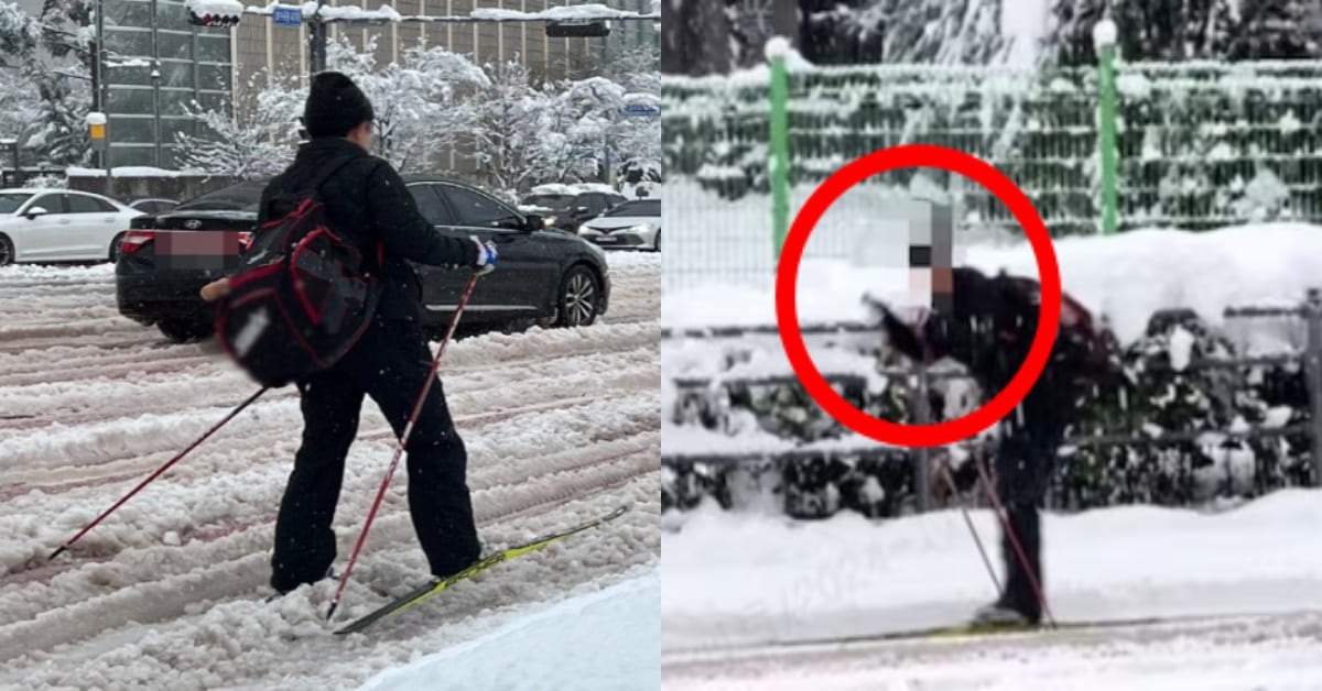 수도권에 기록적인 폭설이 내린 지난 28일, 스키를 타고 도심을 가로지르는 한 남성의 모습이 화제를 모았습니다. '광교 스키남'으로 알려진 이 인물은 경기도 용인의 한 고등학교에서 근무하는 김정민 교사, 크로스컨트리 국가대표 출신으로 밝혀졌습니다.