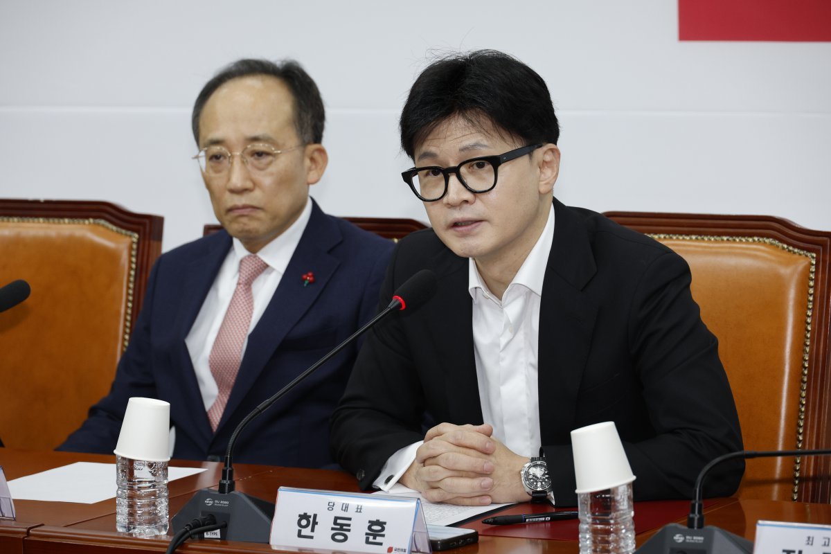 한동훈 대표는 6일 국회 긴급 최고위원회의에서 “새로이 드러나고 있는 사실을 감안할 때, 대한민국과 국민을 지키기 위해 윤석열 대통령의 조속한 직무집행정지가 필요하다고 판단한다”고 밝혔습니다.
