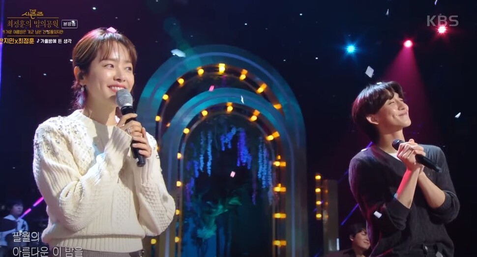 한지민과 최정훈의 만남은 KBS 2TV '더 시즌즈-최정훈의 밤의 공원'에서 시작되었습니다. 이 프로그램을 통해 처음 만난 두 사람은 음악을 매개로 자연스럽게 가까워졌습니다. 한지민은 최정훈의 음악 팬으로, 그의 콘서트를 방문하며 인연을 쌓아갔습니다.